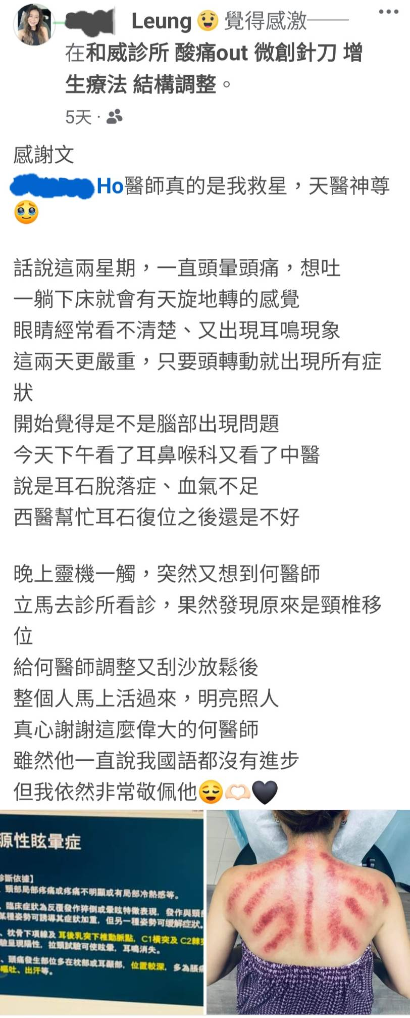 2. 針刀鬆解緊繃的軟組織(T型針刀鬆解術),經過一次治療後已經明顯改善8成,總共做三次針刀治療,頭暈狀況已經完全改善。